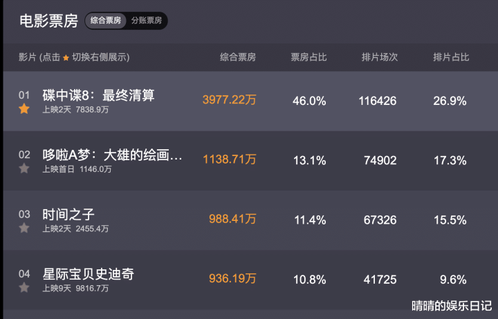 可是这个档期除了动画片霸榜外,还有一部让许多不雅众期待已久的电影也上映了,那便是《碟中谍8:最终计帐》。