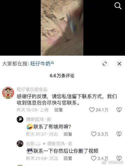 旺仔官方账号在该网友指摘区下方也回复说念:感谢反馈,请您私信留住经营形势,咱们收到信息后会尽快与您经营。@旺仔俱乐部 也在指摘区回答称:感谢各人的反馈,旺旺会积极措置相关问题,请各人省心!