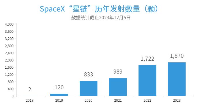 2023年SpaceX公司加快编织天际卫星网。年头于今,SpaceX公司利用“猎鹰”-9号火箭完成58批“星链”辐射任务,合计部署1870颗“星链”卫星。现在,“星链”星座在轨卫星规模达5144颗,占全球在轨卫星总量超55%,是东说念主类有史以来规模最大的卫星星座。