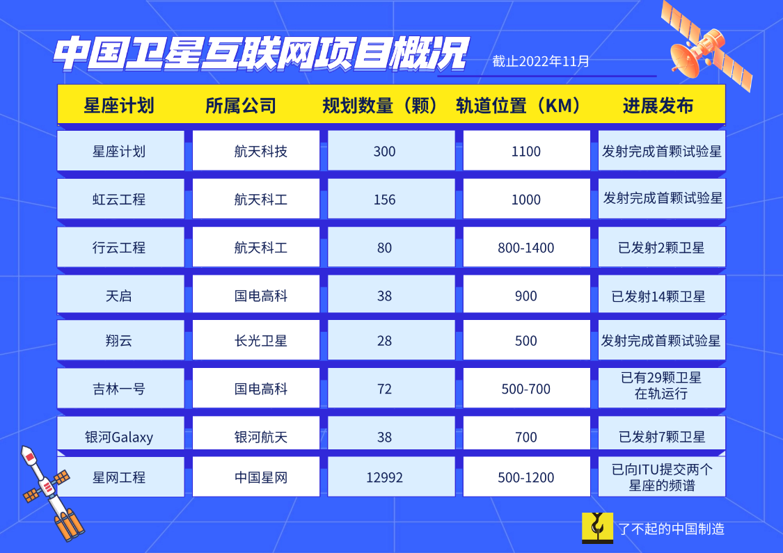 “虹云工程”是由中国航天科工集团有限公司牵头研制的诡秘全球的低轨宽带通讯卫星系统,规划用156颗小卫星组成卫星互联网系统,“鸿雁星座”是由中国航天科技集团自主建设的低轨卫星通讯系统,规划用60颗中枢主干卫星和数百颗宽带通讯卫星组成系统,达周到球无死角的解放接入宽带互联网。