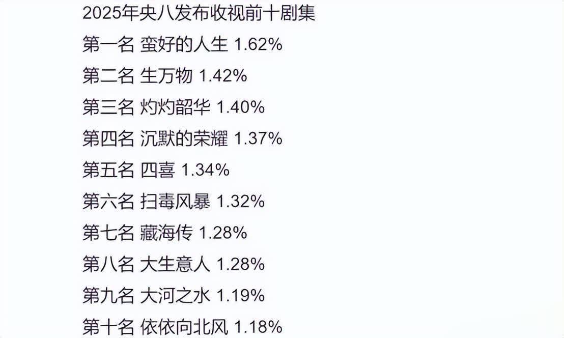 当下,CCTV电视剧发布了2025年央八收视前十名的电视剧排名,一谈来望望榜单中有无你期待的作品。