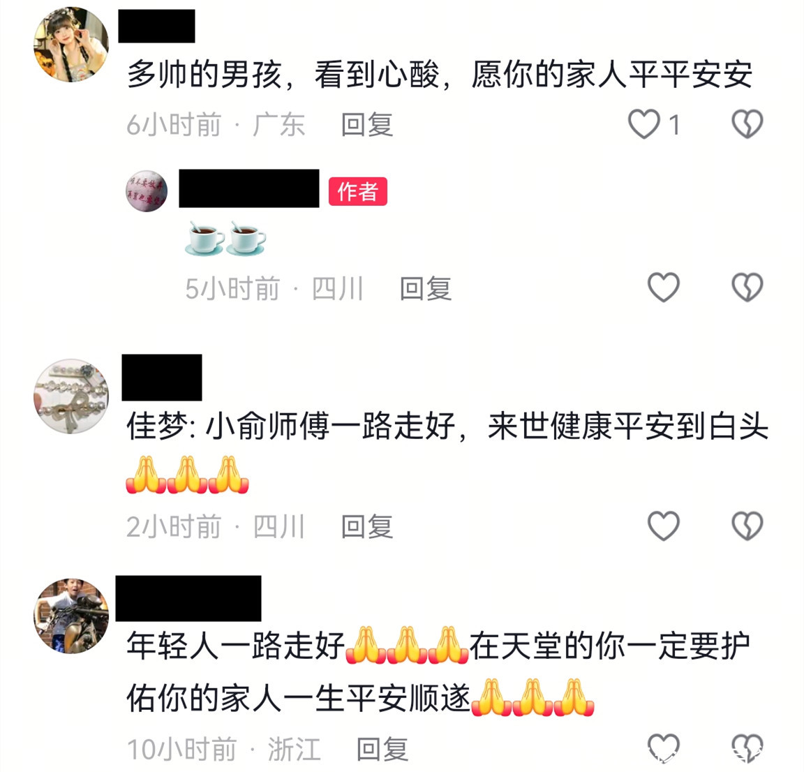 看到这么的图片和翰墨,不虞志小俞师父的网友关于一个年青生命的逝去,大感戚然,纷繁留言吊唁。