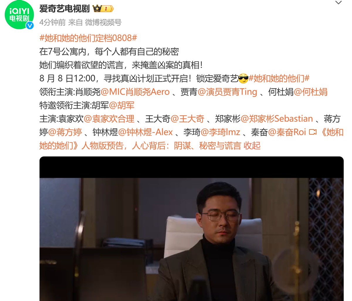 20集齐市不法悬疑剧《她和她的他们》定档于8月8日上线桃厂,演员声势浑厚,故事张力十足,要问暑期档哪部剧作有望大爆特爆,就看这部新剧了!
