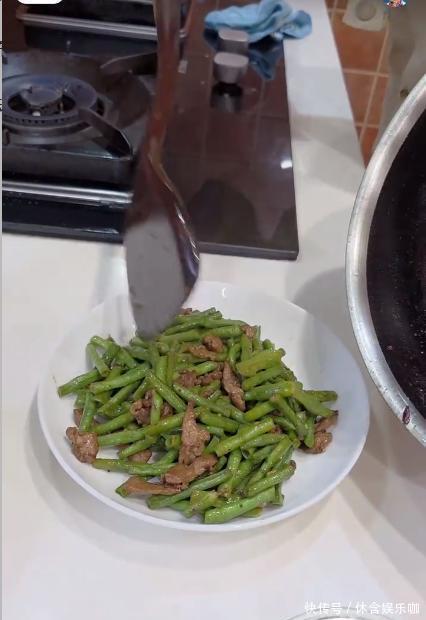 视频里她身处迢遥亮堂的厨房,熟悉地切菜、打蛋、颠勺,动作鸿章钜字,颇有大厨风姿。