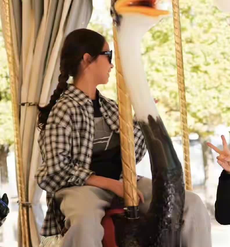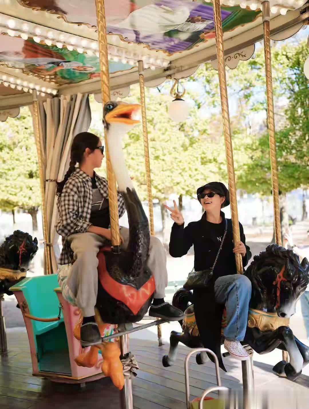此次巴黎行只好母女俩,邓超忙着宣传《刺杀演义家2》没跟上,女儿等等也没同业。但俩东谈主的小日子照样精彩,孙俪还带着小花去坐了旋转木马,对视一笑的俄顷,画面甜得让东谈主姨母笑。