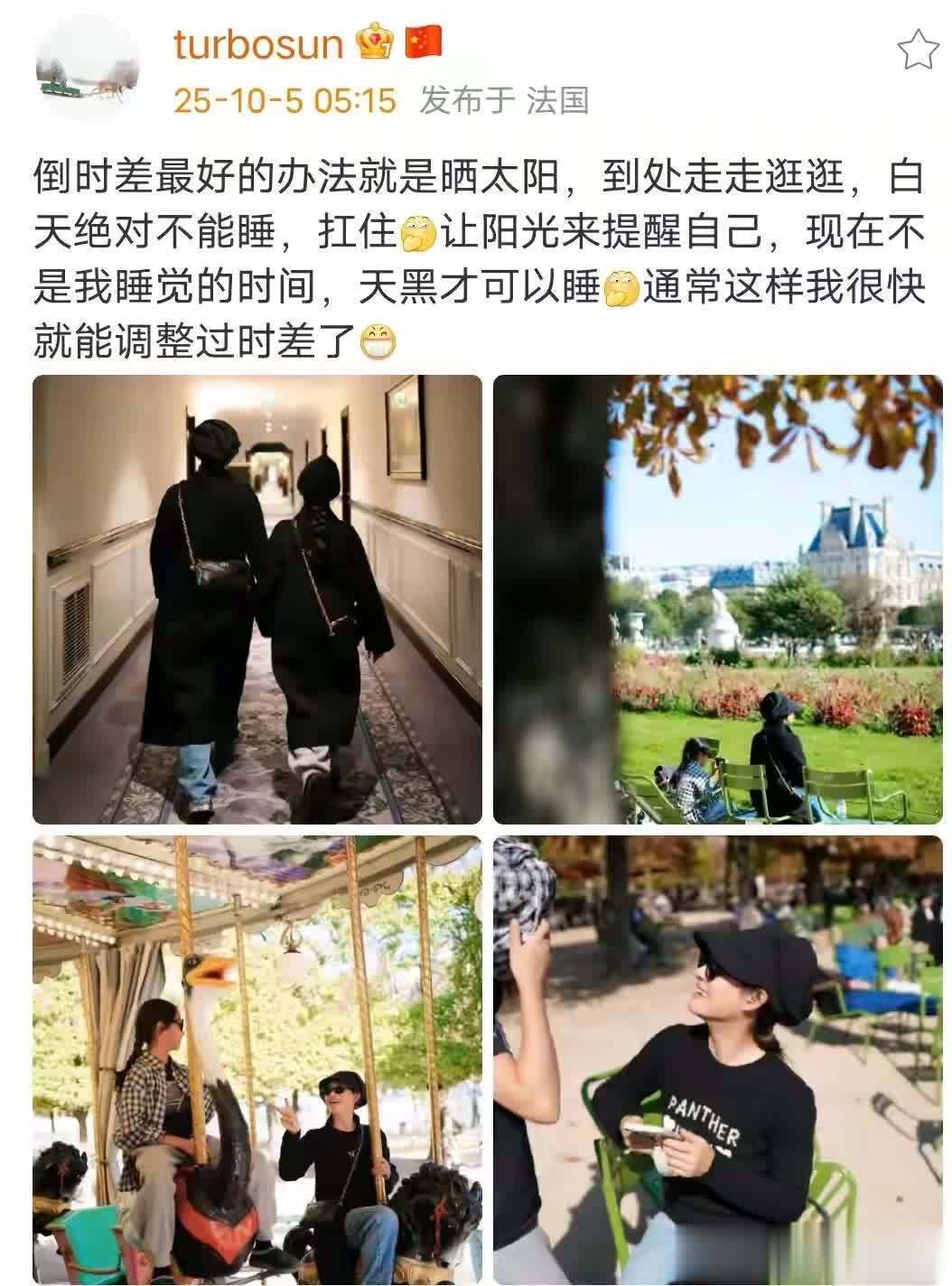 刚到巴黎,母女俩就先跟时差“过了过招”,孙俪共享说倒时差的窍门便是硬扛,白日再困也不睡眠,还拽着小花到处逛。