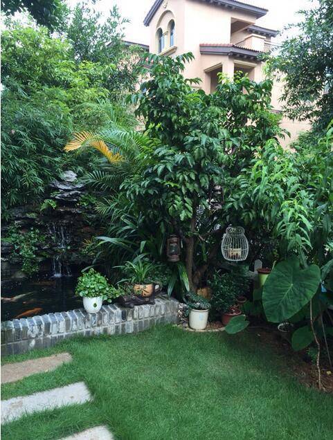 庭院浩繁,尽是花花卉草与大树,身处大城市却有这般模式,实在费力!