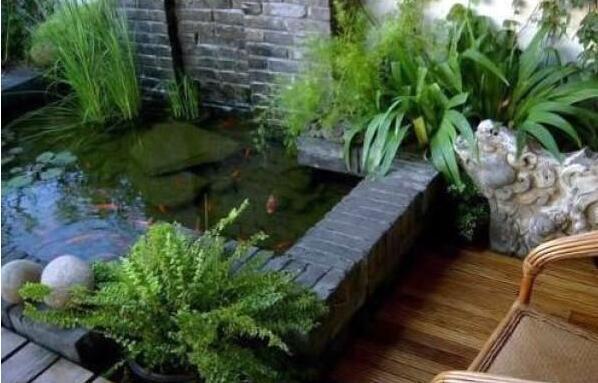 鱼池特写,傍边铺布防腐木地板,甩掉安静椅,在此赏鱼,惬心似至人,号称一种享受!