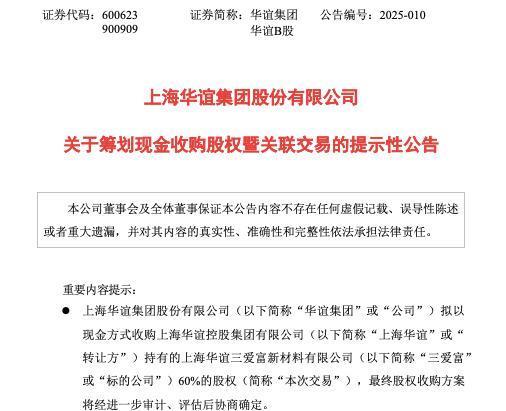 公告泄漏,围绕公司聚焦新材料、强化科技编削的发展原则,为进一步股东公司在氟化工产业的计谋布局,升迁概述竞争力,终了协同效应,公司拟以现款状貌收购上海华谊执有的上海华谊三爱富新材料有限公司(以下简称“三爱富”或“主见公司”)60%的股权(简称“本次交游”),最终股权收购决议将经进一步审计、评估后协商笃定。
