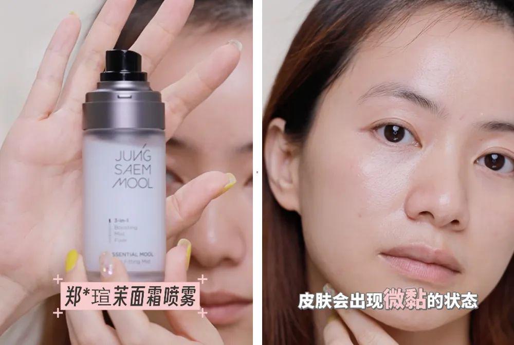 我用了郑瑄茉的面霜喷雾去打底, 它这种小瓶装 更合适放在包包里带外出使用。 全脸喷上后, 皮肤会出现微黏的气象,能 更好地帖服底妆。