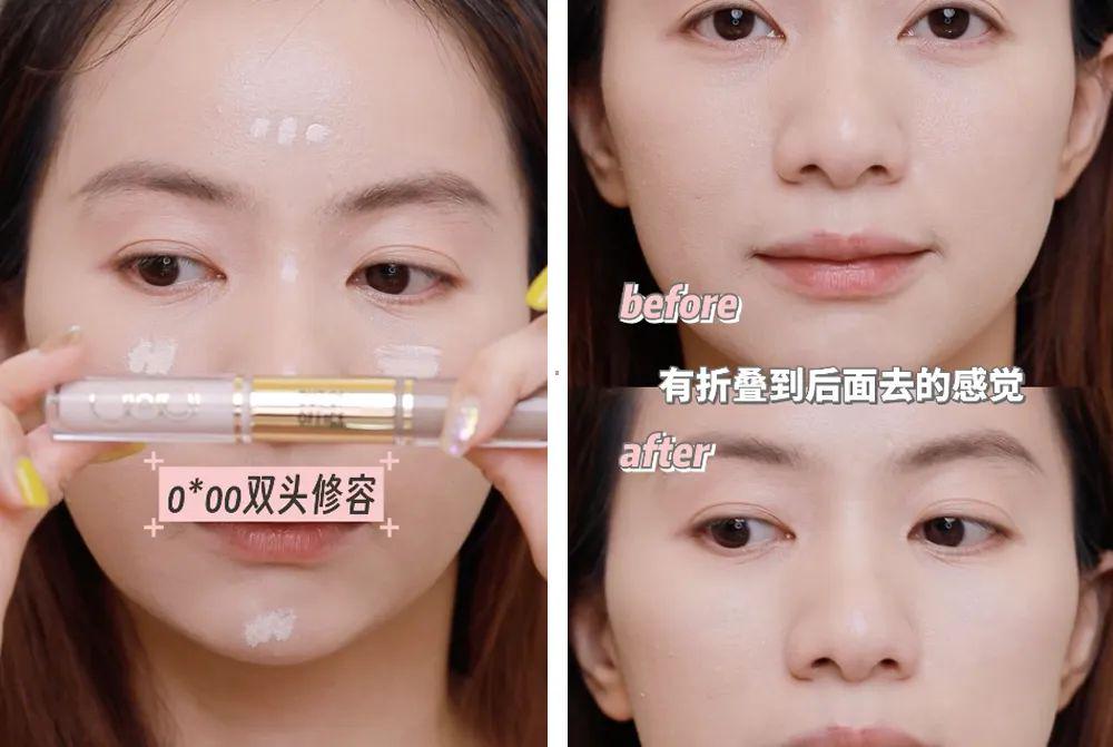 因为液体修容产物画出来的效用是更有骨相感的,是以我会用到ooo的双头修容棒, 用白色去提亮内轮廓。只须面部中间变得平整了亮堂了,就会显得外轮廓有折叠到背面去的嗅觉。