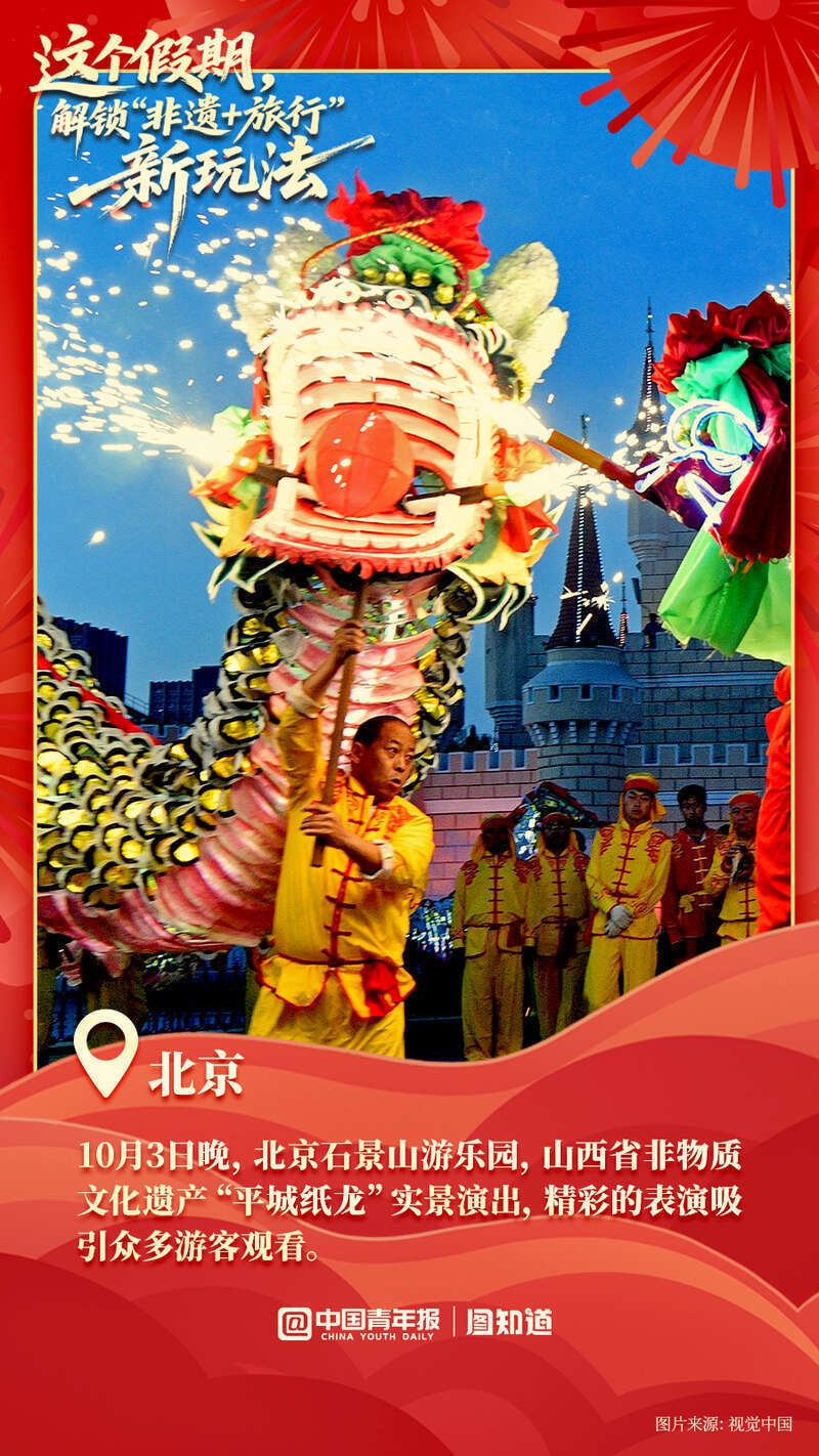 赏一场非遗饰演,享一次非遗体验,买一件国潮文创……让传统文化“活”在路径,这个国庆、中秋假期,“非遗+旅行”已成越来越多搭客过节出行的“心头好”。你的旅程重逢了哪些非遗?接待在挑剔区与咱们共享。